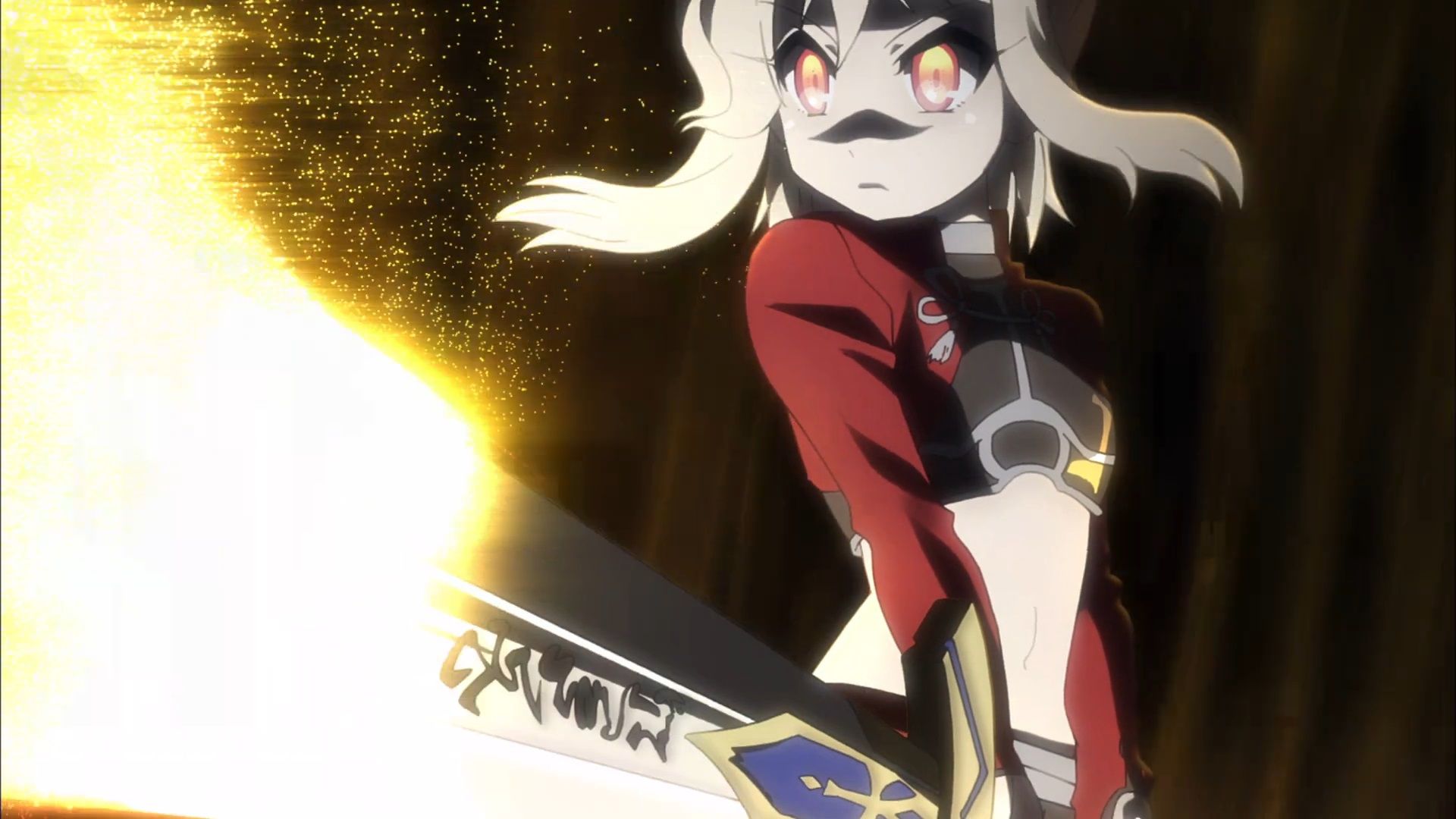 Rin and Luviagelita prove that you can never win a fight win beam spam. Saber unleashes hell. Illya and Miyu run for their lives and get cornered which unlocks Illya’s hidden powers. Illya infused with the power of the Archer card unleashes holy hell.