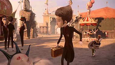 The film begins with a sequence of the “coldest day ever” where we see the town go from snowy to frozen over in stunning fashion. The gothic spires, twisty streets, and angular architecture evoke just the type of macabre visual style that I love. The style becomes ever more realized as the movie goes on introducing things like an accordion stream train (seriously, this was so cool) and a sideshow filled to the brim with odd characters.
