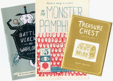I picked up some student work from MICA as well as my alma mater SVA. Robert Young’s Occult Wresting Trading Cards had the right balance of macabre humor for me and they even came with a button inside the box! While, Battle Vixen and Warlords by Liz Pulido fit in firmly with my D&D-inspired buying binge.