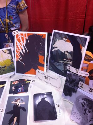 Well, it was pretty much a guarantee that I couldn’t pass up anything called All My Anime Boyfriends. This happened to be an autobiographical book by Kali Ciesemier which featured portraits of her anime crushes in chronological order. (I might need to do a post about this myself one day!) Her style has a soft fluidity to it which comes through in a grayscale book like this as well as her full-color prints. Kali was also one of the artists features in the Winter is Coming art show.