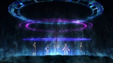 The idea of the ritual is to have the near infinite powerhouses that are Illya and Miyu pump mana into a dowsing rod to flow through the local ley lines in the hidden caves they have uncovered. Hopefully after a few tests they can see where the mana is getting blocked up at hopefully have some sort of clue of who or what is still causing the disturbance in the city. At first the ritual seem to work fine. They pump in a good deal of magic and it starts to flow out. There is some decent CG around a rather cool Yggdrasil looking dosing rod. But as all the wards in the area should have told them they should not have assumed this would go off without a hitch. Soon it seems they set off another trap and the cave they are in starts to collapse.