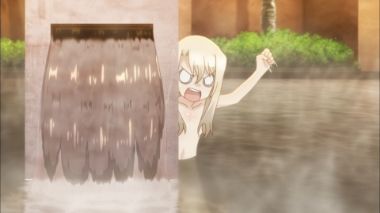 So Illya is getting into fighting form because she knows that eventually she is going to have to fight Kuro. Hopefully not to the death but that is not out of the question. This results in a hole blow in the bathroom which makes the trip to the Edelfelt estate necessary. Since Luvia’s end goal has always been naked Shero in her home she welcomes them to use her luxurious bath. It is not exactly what she wanted but a step closer none the less. This leads to lots of naked time and a few jokes around the fact that Leysritt is the oppai queen whereas Sella is more like Saber.