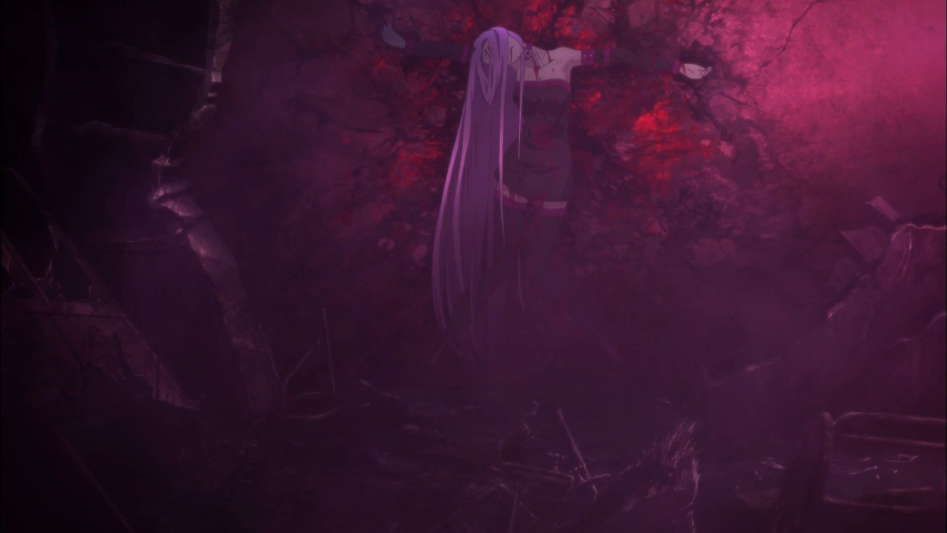 Rin and Shiro meet up after the less than ideal battle at Ryuudou Temple and discuss how to move on from there. But as they are relaxing Shinji activates Blood Fort Andromeda in hopes of powering up Rider and killing his redheaded rival at the same time. Before things can go down it seems that Caster and a mysterious third party have already taken out Rider with a single blow.