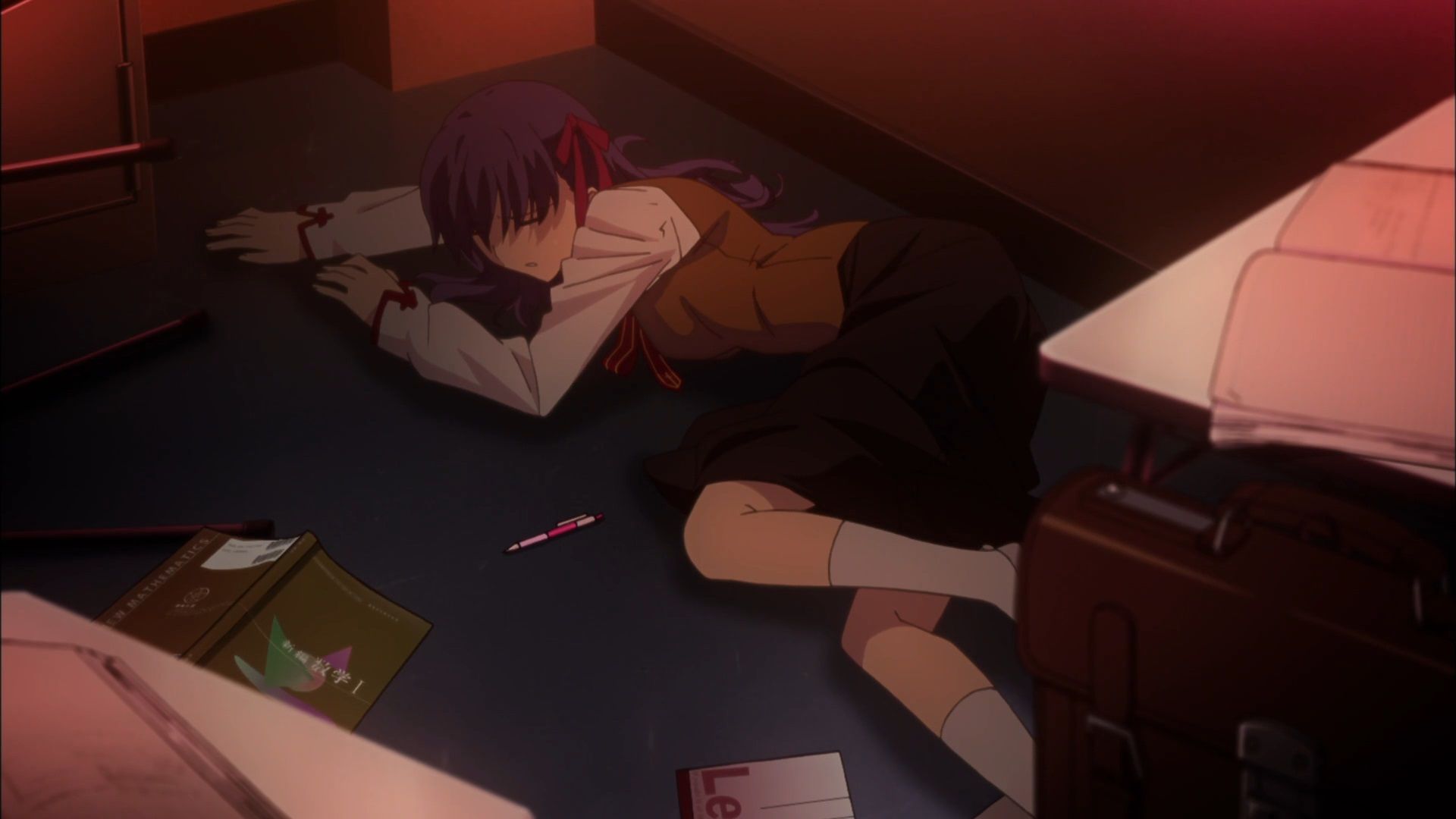 Rin and Shiro meet up after the less than ideal battle at Ryuudou Temple and discuss how to move on from there. But as they are relaxing Shinji activates Blood Fort Andromeda in hopes of powering up Rider and killing his redheaded rival at the same time. Before things can go down it seems that Caster and a mysterious third party have already taken out Rider with a single blow.