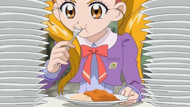 The girls in PreCure 5 love to chow down. There are eating something in every episodes and in qualities that would give the adventuring party form Slayers a run for their money. At one pointed they are poised to go to a private island to train but they spend the episode before that just getting snacks for their trip (and then get attacked in the supermarket.) That is a dedication to food you will not see in other Precure series.