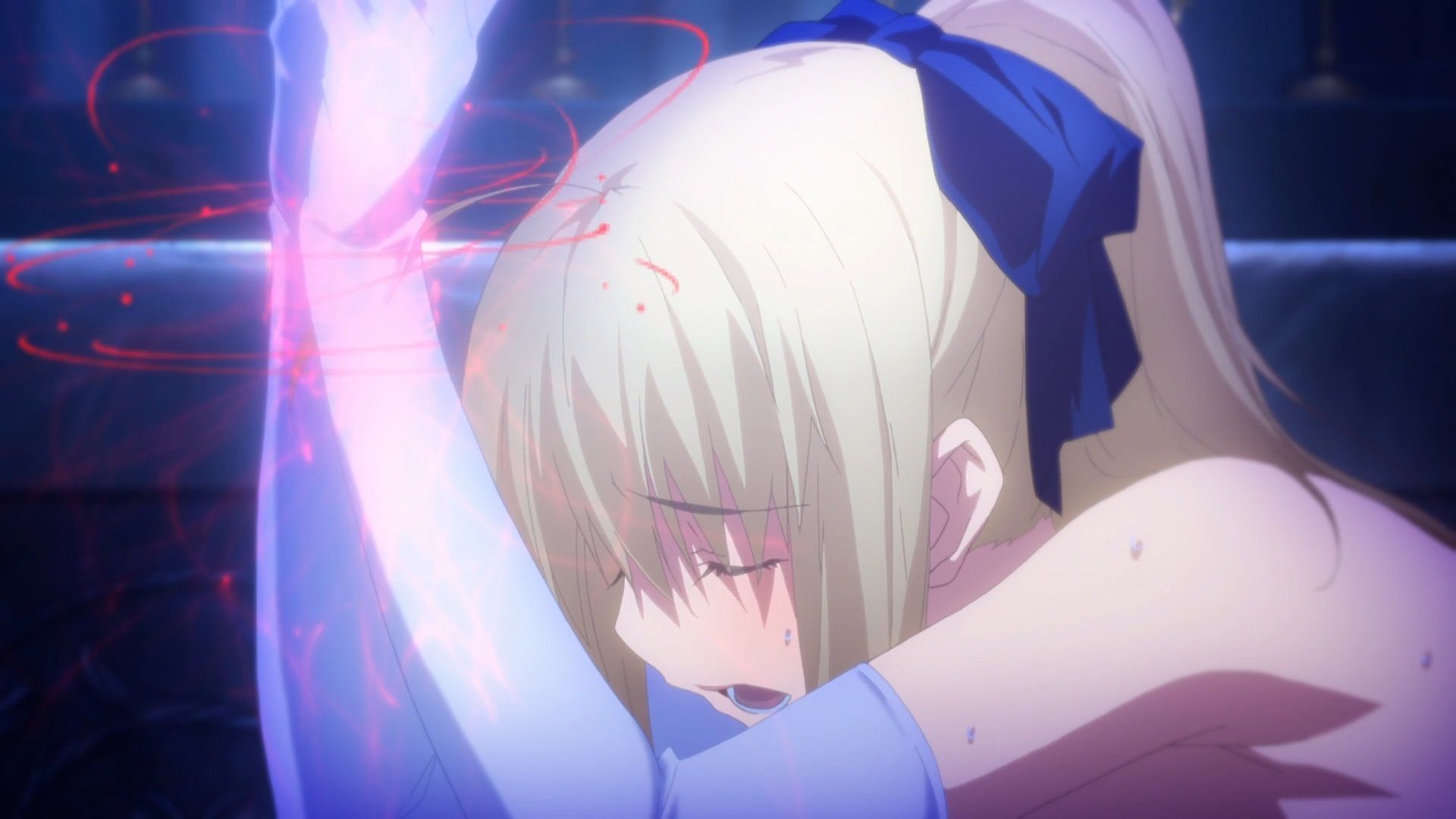 I would have to say that there scene with Rin and Shiro talking back to back is probably one of the most iconic scenes in this path for me. I’m sure more people would say that one of the flashier fights, spectacular deaths, or sexier moments is what they take away but this scene filled with naked emotional moments is probably one of the most intimate parts of the path. If you don’t believe this scene than Shiro and Rin’s partnership (and romance) will ring hollow. Before this moment they were unlikely allies with some sexual tension. This is the moment they will either hang together or fall part. If they don’t have a bond you can feel then everything past this point will seem fake. Thankfully Ufotable was able to do their usual magic when they need to.