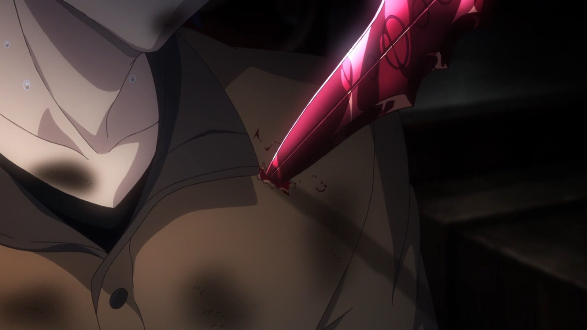 I do have to say that they play up the sexual violence a bit too much with Rin in this scene. At this point I think there is little left to say about Shinji. It is clear they are trying to make him despicable as possible. It is cheap but at least it makes sense with his character. The thing that actually got to me the most was Kotomine placing his hand between Rin breasts before he strikes. It would be hard for Kotomine to care less about Rin sexually but that action was purely for the audience more than anything else. It seemed like a poor choice all in all. He was menacing enough as it was. That just added a weird wrinkle to it all.