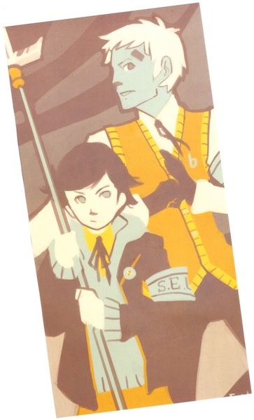 I tend to stay away from prints bigger than a postcard but I loved the graphic style and minimal color of Lesser Key Studios‘ Akahiko and Ken from Persona 3.