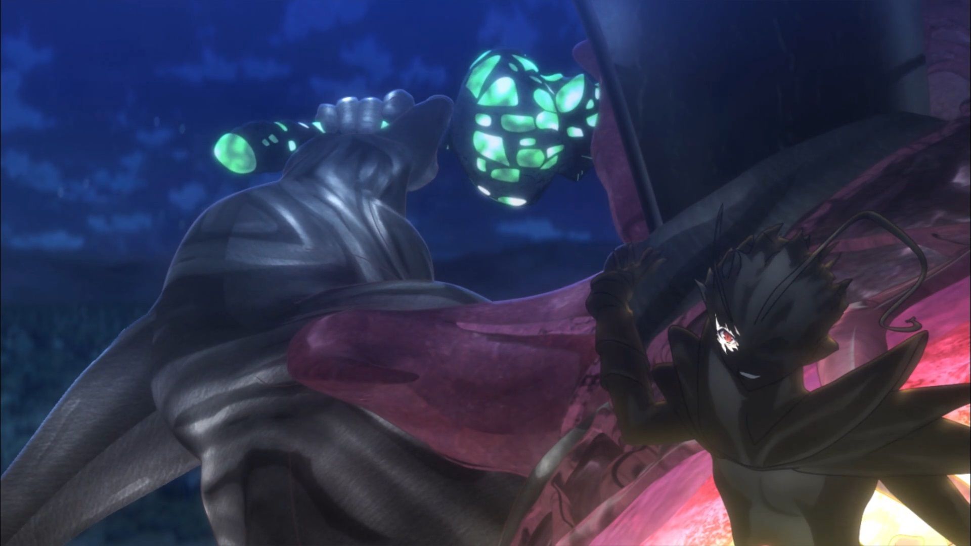 But before the Zanbatō can wipe out the two brave warriors an ultimate power arrives. Illya discovers that when the power of Jade and Amber come together than anything is possible. (Just don’t combine Robotic Jade with Mad Scientist Amber. That leads to the Rise of the Machines.) Wielding both Magical Ruby and Magical Sapphire (and a dash of fighting for your friend) transforms Illya into a force on par with the Giant Dark Demi-God. Snapping Gilgamesh’s GD6 Chain Sword in two is only the beginning.