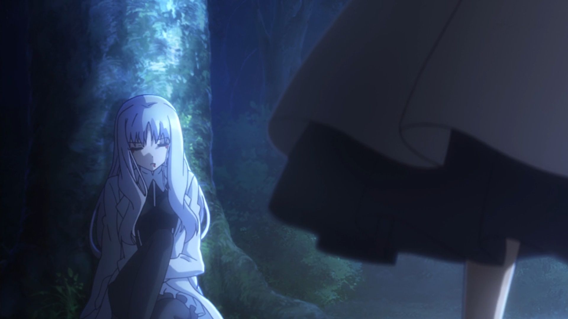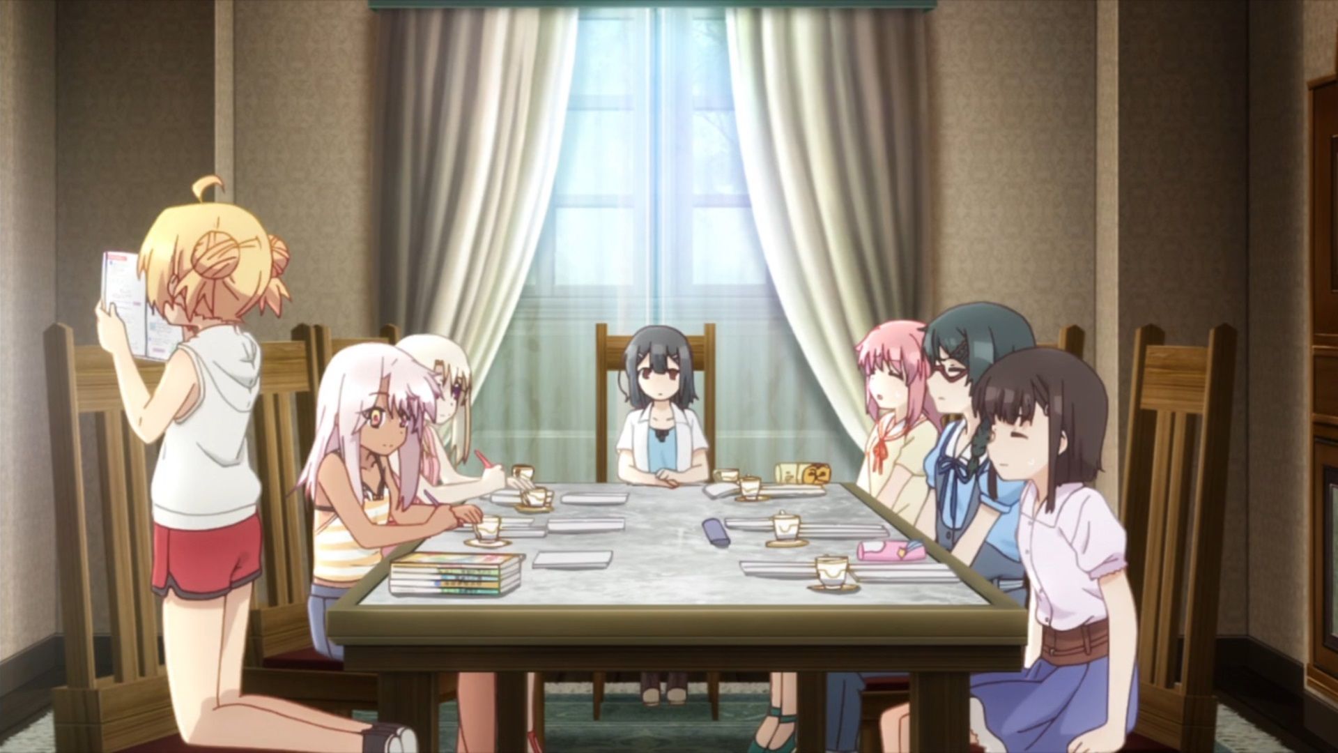 Silly “cat in a box” jokes aside this is mostly a discussion between white haired women who can’t be anything other than observers. At this point Caren and Irisviel can only wait to see what Illya and her gang can do. Both of them have done everything they can at this point.