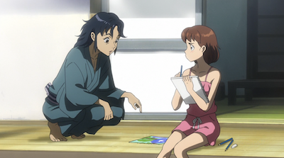 I enjoyed the depictions of finding inspiration for art. The short also did a great job of contrasting Aiko’s amateur style with Souji’s deft calligraphic aptitude, and both obviously standout against the animation. I also liked how it ended in regards to them as artists.
