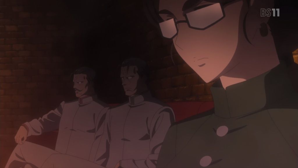 The last main characters finally show up in real scenes that are not just a teaser. That said it is hardly a full scene. It is fairly clear that they have killed the man who was originally supposed to be Jack’s Master, they have no problem in killing in general, and they exude an aura of creepiness. They really feel like the Gilles de Rais and Ryuunosuke Uryuu of the series. They are the murder machine first bosses that can be killed off with little remorse. I’m sure thanks to their character designs they will individually and collectively have their fans but overall they make a first easy foil for the more upstanding members of the cast.